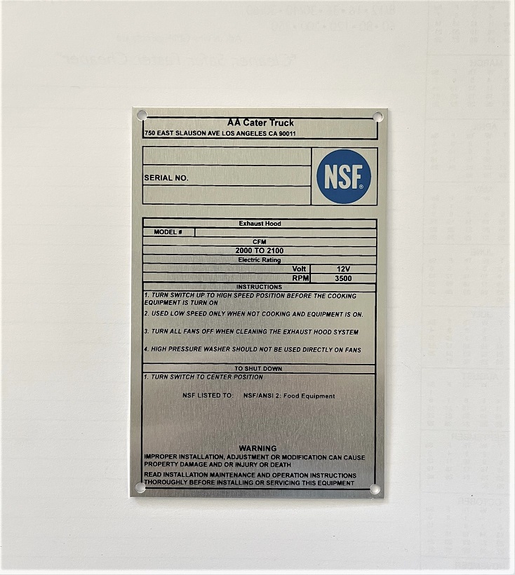 / X924J EXHAUST HOOD NSF PLATE