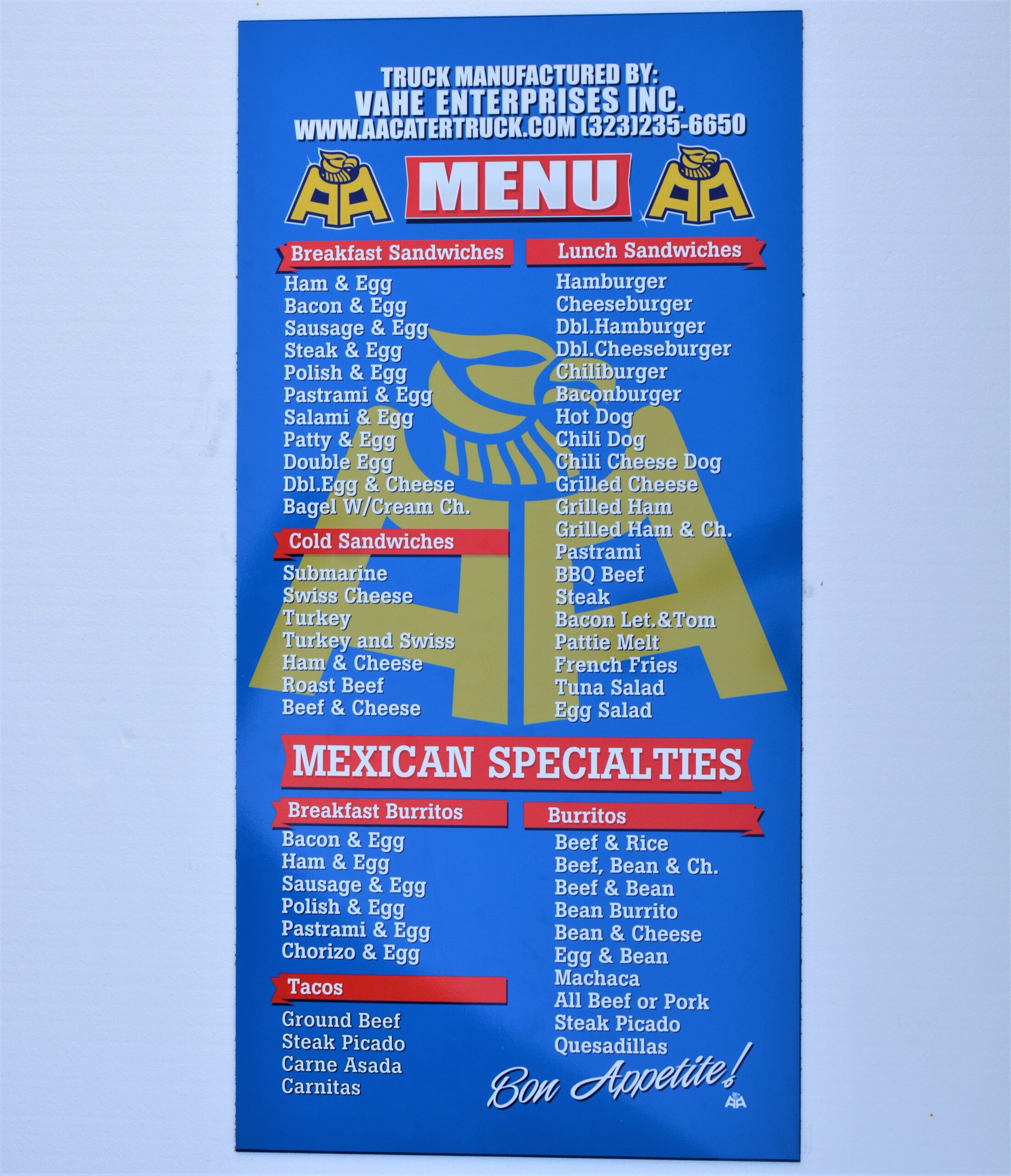 / #X 1074 Menu Board