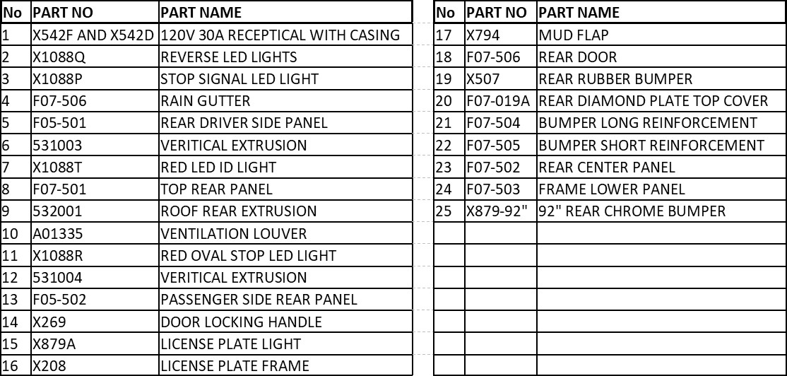 / 2020 Style Ford Rear Parts Chart Click Here for Details