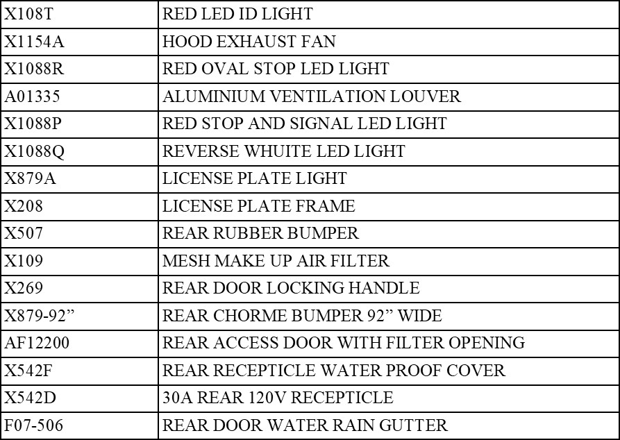 Rear Hardware CHart